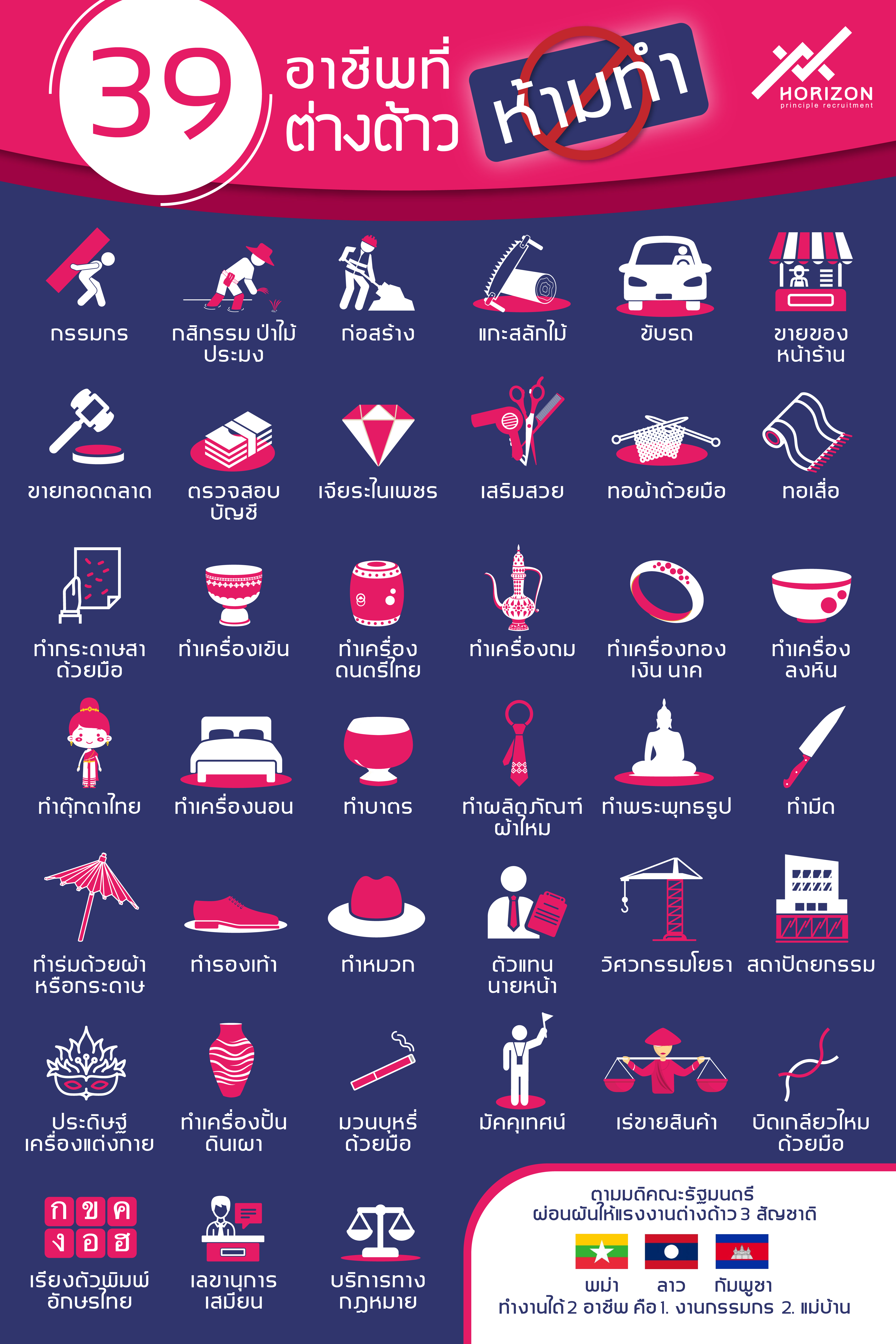 39 อาชีพสงวนที่แรงงานต่างด้าวทำ หากพบเห็นถือว่าผิดกฎหมาย